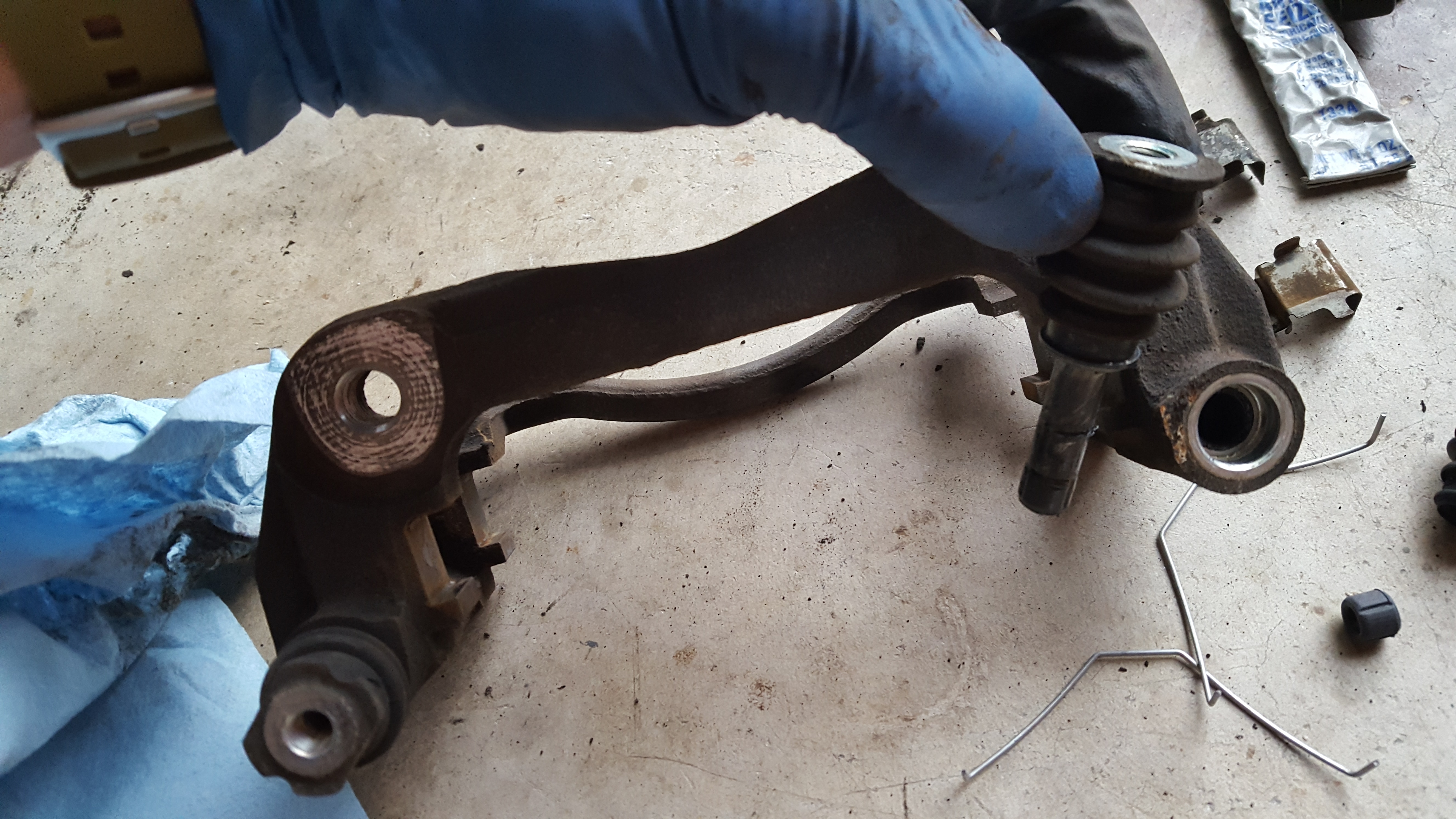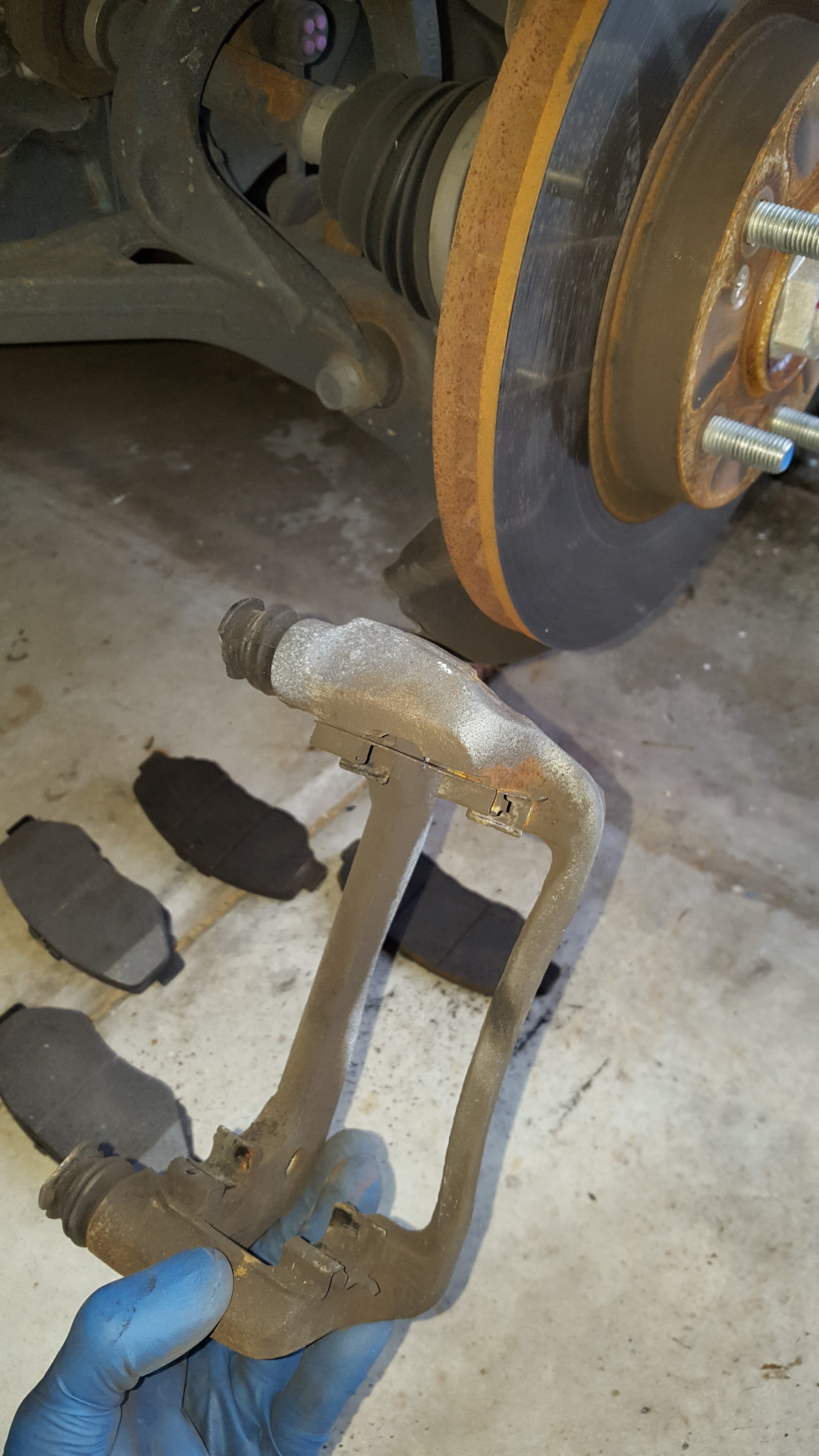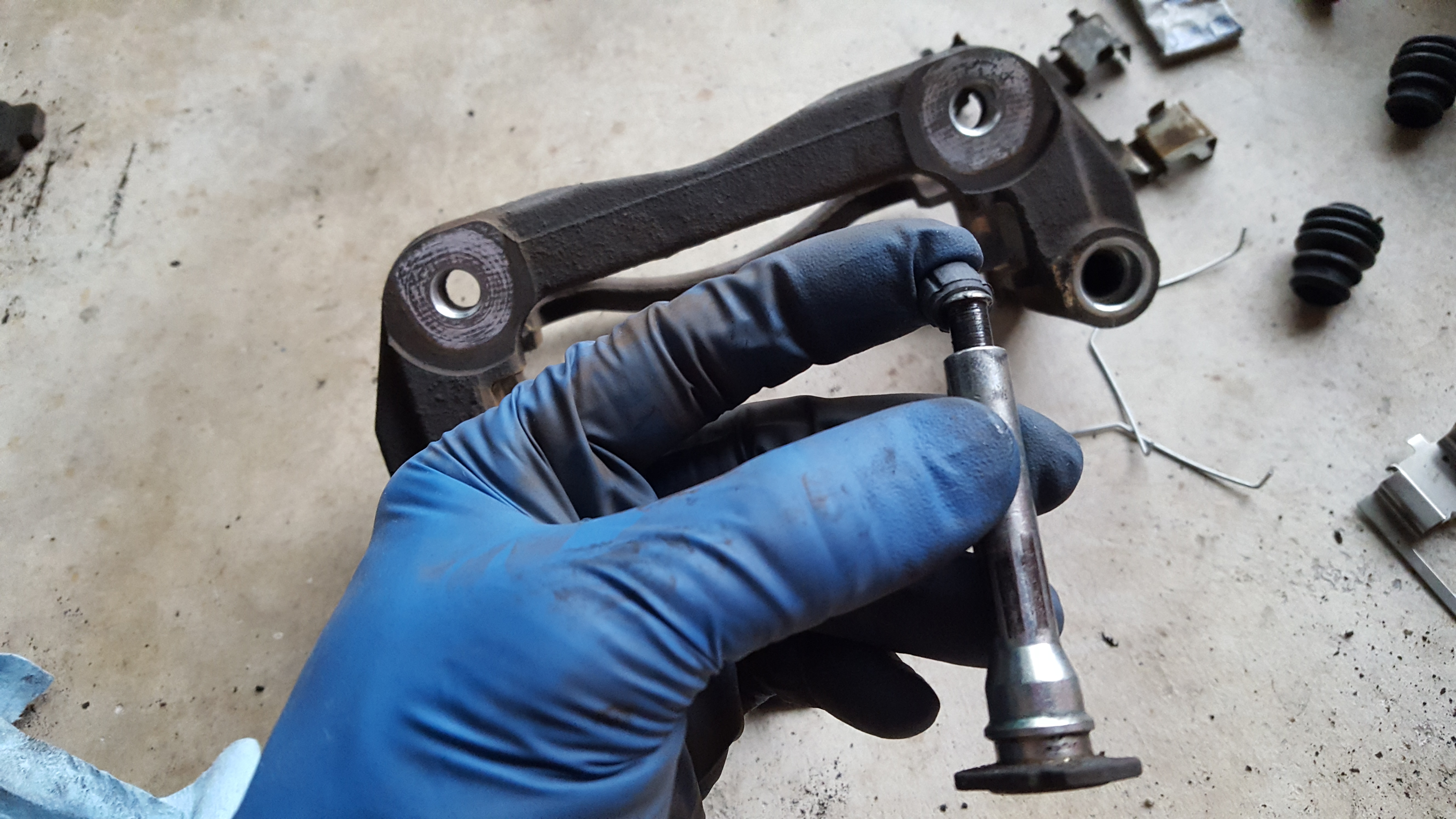 There are two issues that I didn’t get a chance to show: first, the caliper guide pin boots fit better into the caliper mounting bracket first, and then the pin slid into it. I tried to fit it on the pin first like with the front, but it wasn’t able to fit into the bracket since the fit was too tight. No photos since I was covered in grease and a little frustrated at the time!