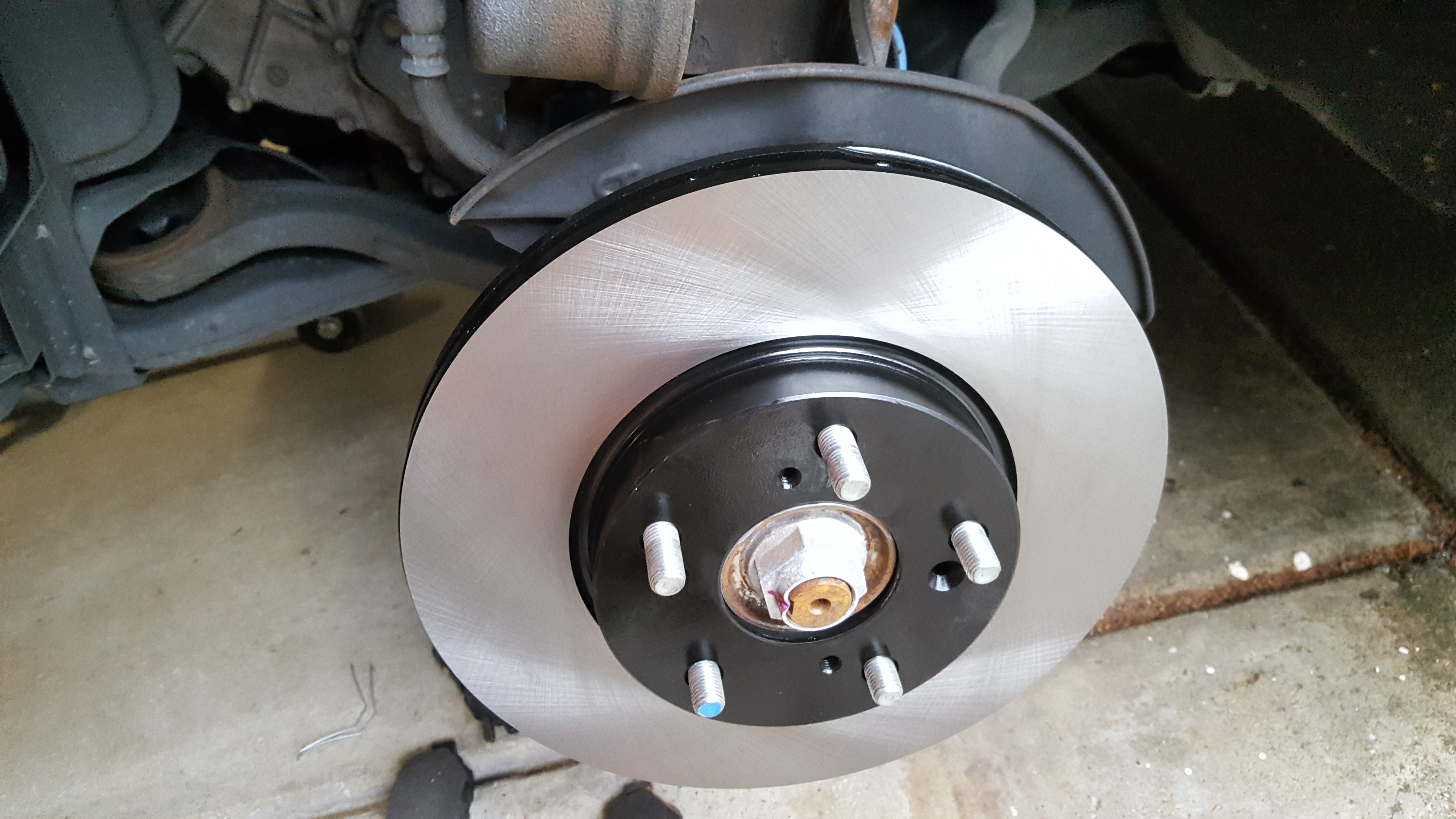 Installation is the reverse of removal from here. Install the caliper and tighten down the bolts. Install the wheel and tighten the lugs. Lower the car and fully snug down the lugs.