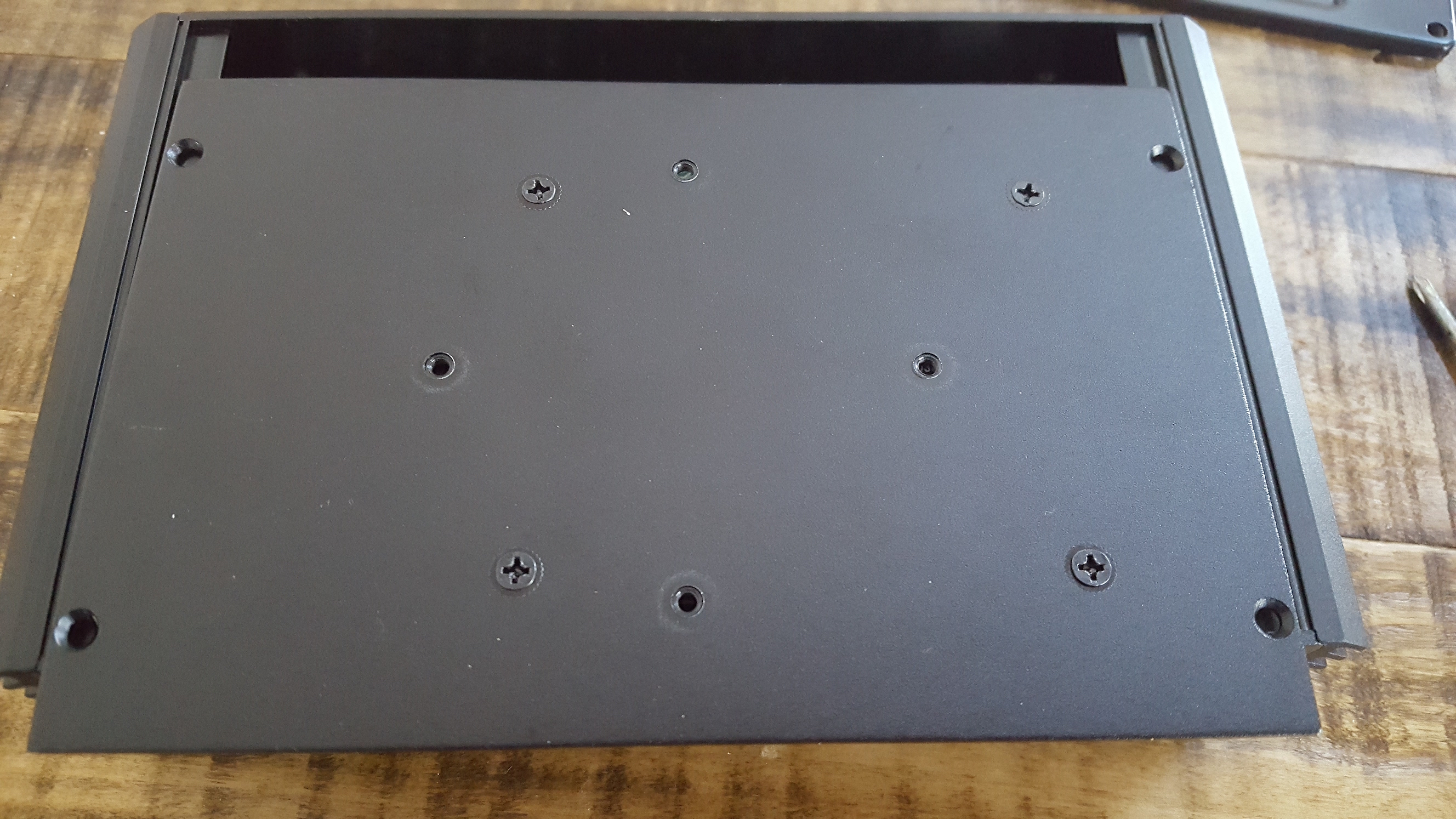 The device comes with three sets of screws: black with a flat head for attaching the SSD to the base from underneath, machine screws for attaching the VESA mounting plate to another surface (I assume), and small posts to attach the computer to that base.