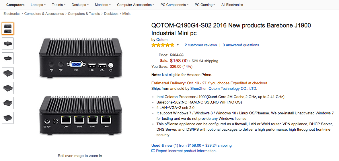 Just a quick note that what you actually have here is the Q310G4 (with the newer, dual core 3215U CPU), not the Q190G4 (which is an older, quad core J9000 CPU). Qotom seems to be selling the new model under the old name on Amazon in order to maintain the reviews, but it is a different device.