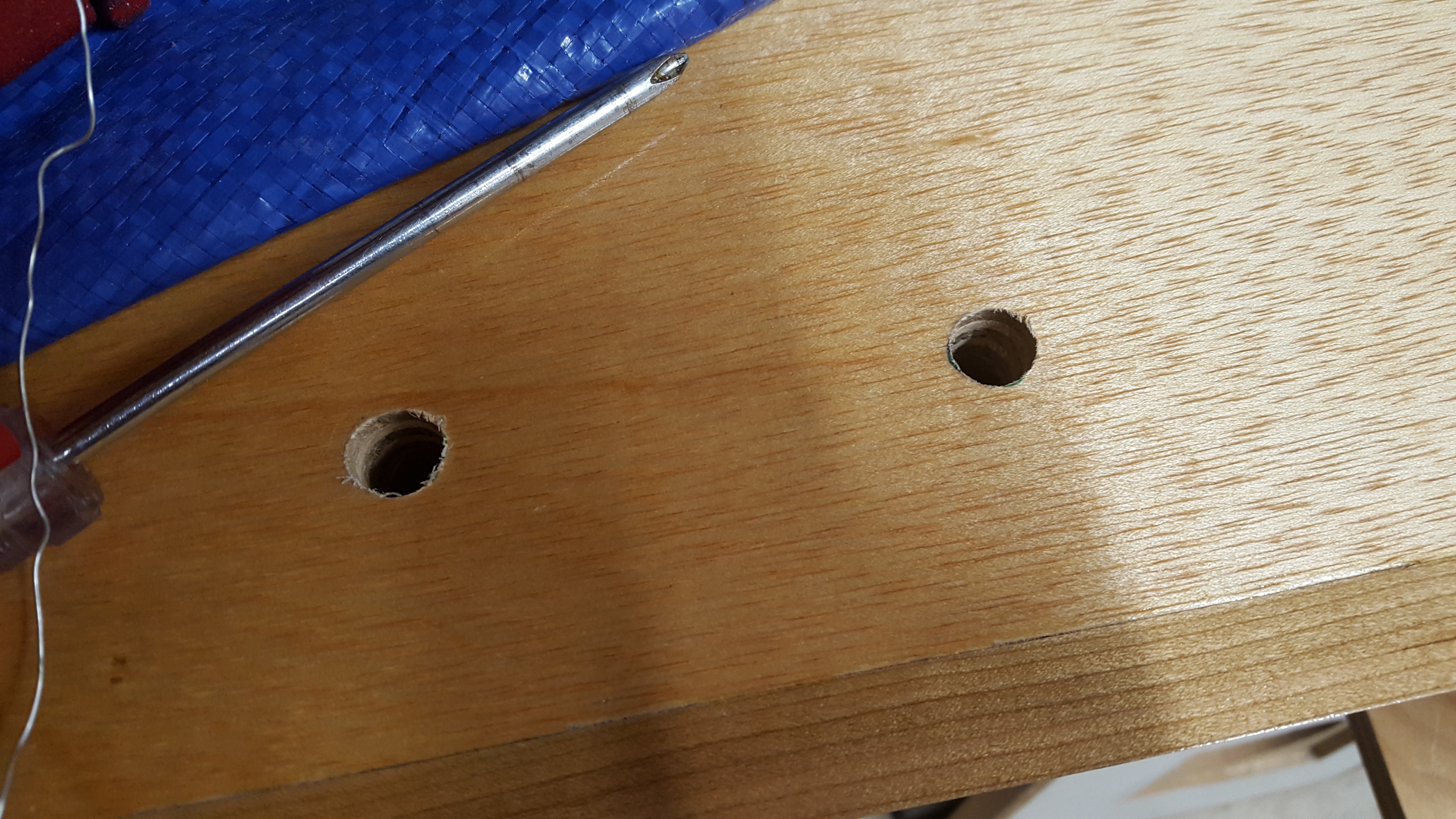The top was an old piece of 5/8″particle board screwed from the top, covered by a 3/4″ piece of Sande Plywood that was screwed down from underneath for a clean look.