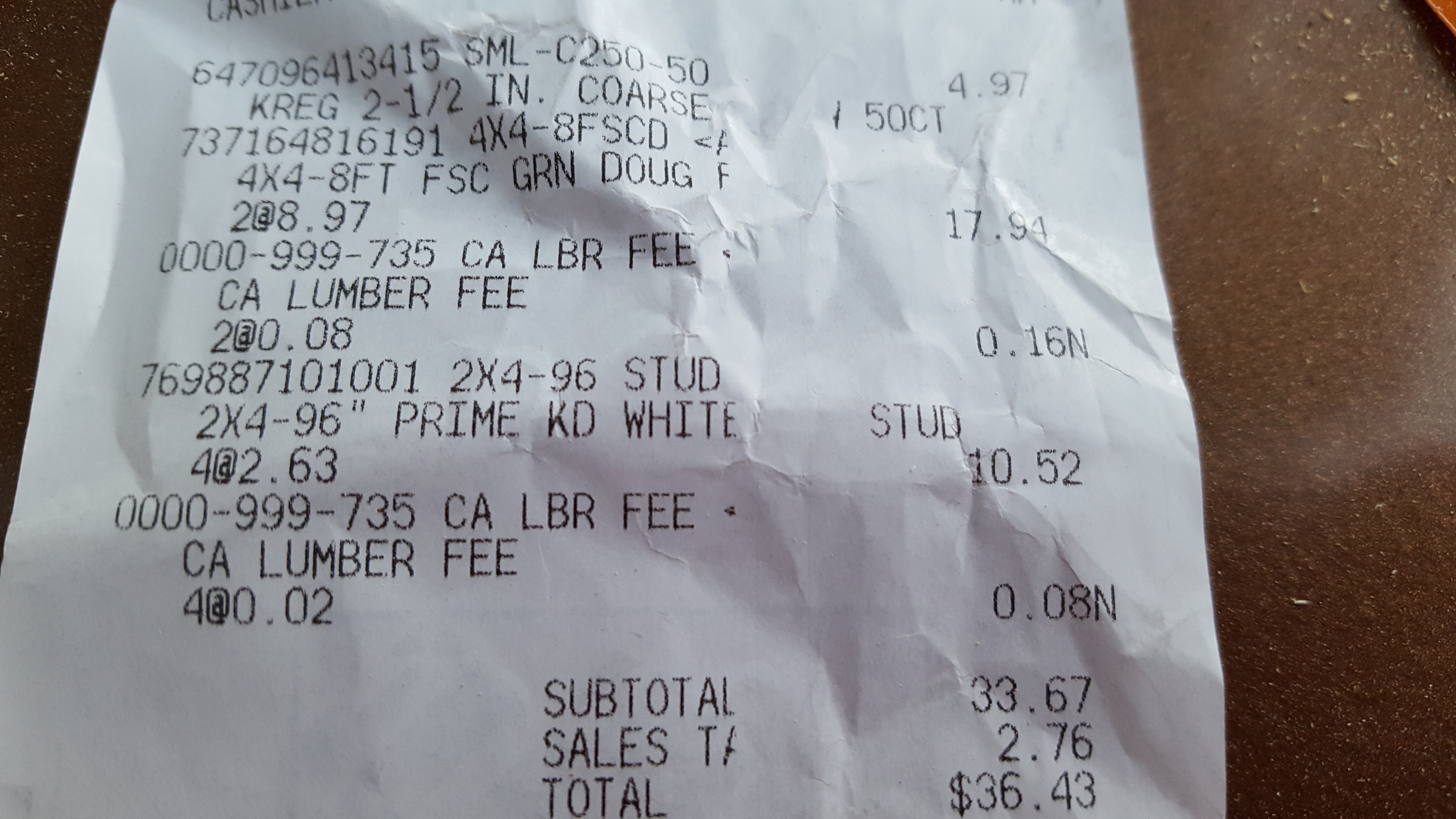 I made a trip to the Home Depot and bought the wood I thought I would need. The final plans call for: