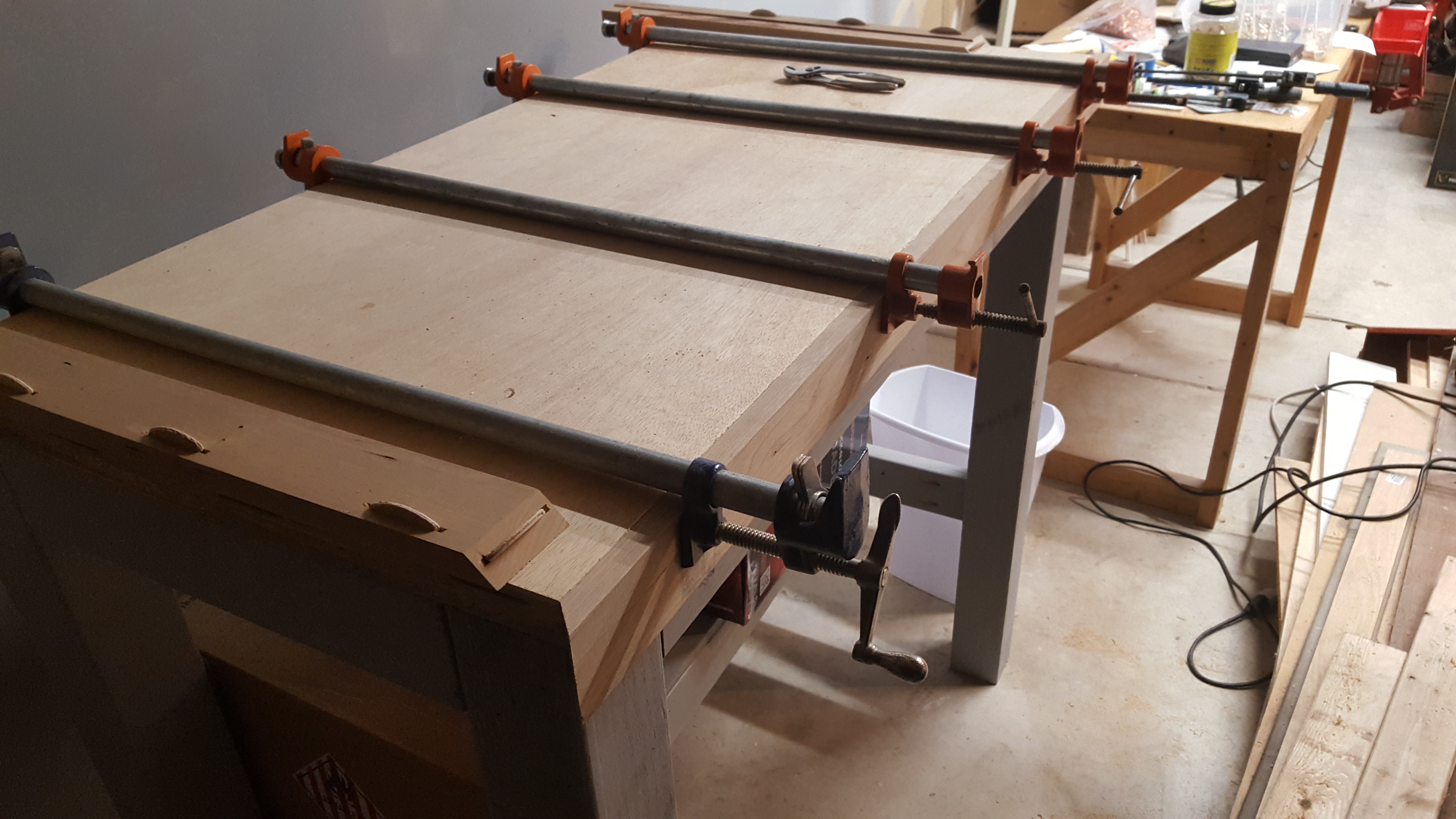I then spread glue across the faces, in the slots, and on the biscuits and clamped them in place.