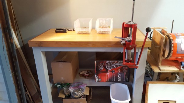 I first started reloading using an old, rickety workbench. Although it worked, to keep the press from bouncing around and spilling powder, I had to keep a firm grip on the front of it. The best solution was to build a new bench!