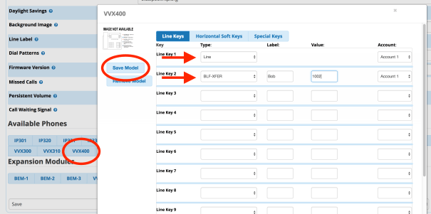 Assuming your phone and environment are setup correctly, the phone with the MAC you inputted will reboot and display the Line Keys you added to the phone and expansion module.