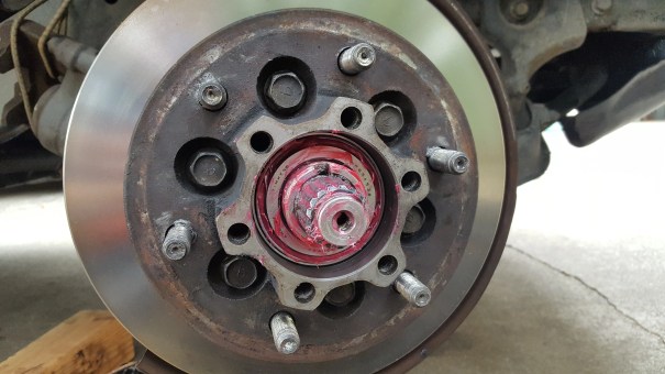 Now to be honest, I don’t think I needed to replace my wheel bearings. They could probably have just been cleaned and regreased, but the cost was around $70 for both front bearings and the grease seals, and since I was already doing a brake job and replacing the auto locking hubs, it wasn’t much more work. Also, my Trooper is from 1991 and I think the bearings were never repacked since the factory. The service manual says they need it every 30,000 miles, and I was about 180,000 miles overdue!
