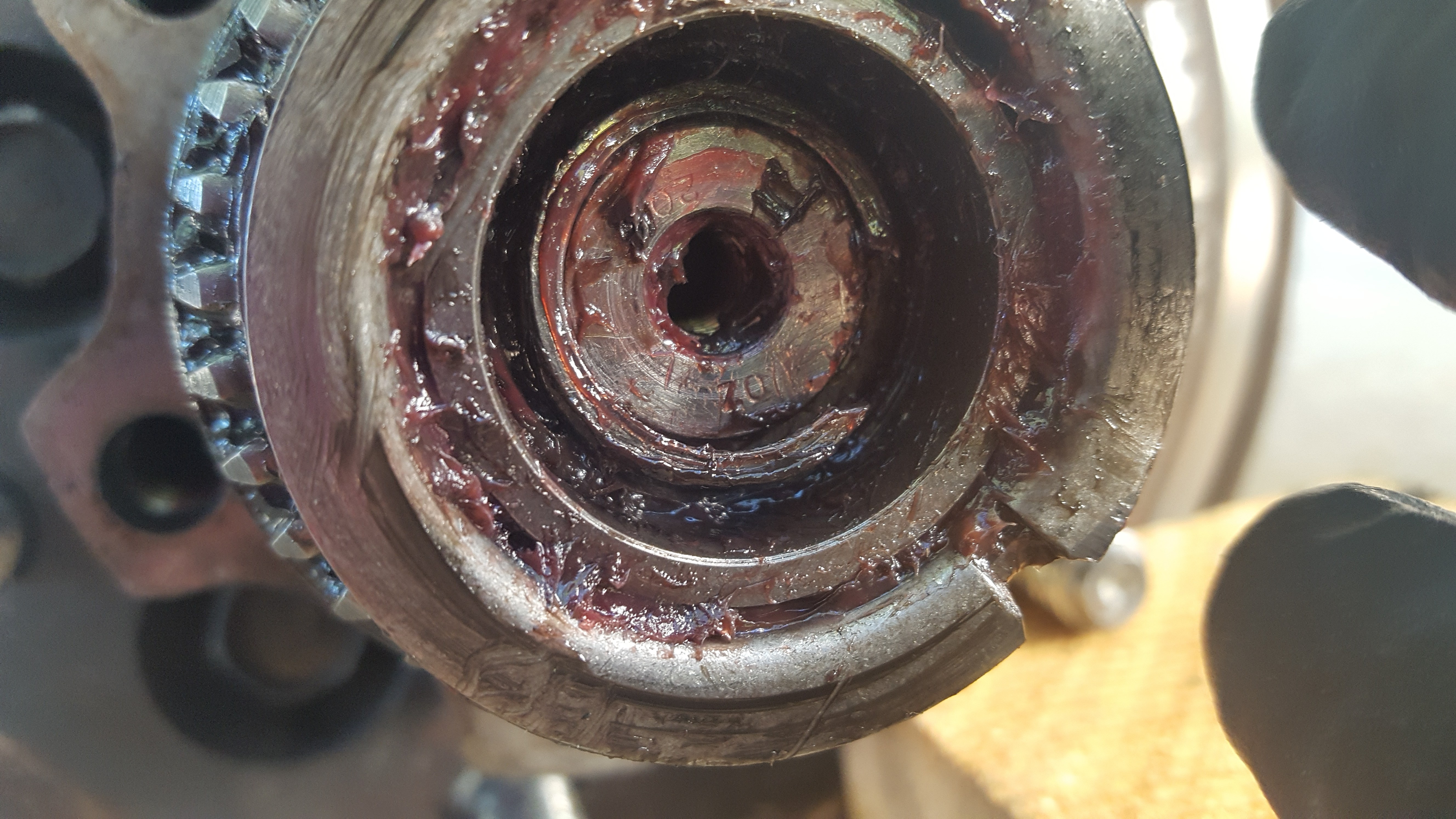 With a small punch, drive the races out. Each has two small cutouts to place the punch into. Try not to muck up the wall and keep the punch only on the race edgeSeat the new race as squarely as possibleFor the inner race, I don’t have a large enough driver and used a block of wood to get it seatedSo I used a punch and carefully worked my way around the edges. Very painstaking but no sign of marring anything upThe outer race is smaller and my driver can install it. Much easier to use the right tool!Check to see that it’s installed all the way down and evenBoth races installedAfter driving in the new races, add a few ounces of grease (the manual says 1.24 ounces. If you know a good way to measure that, let me know!) to the space between them and then coat the rest of the inside