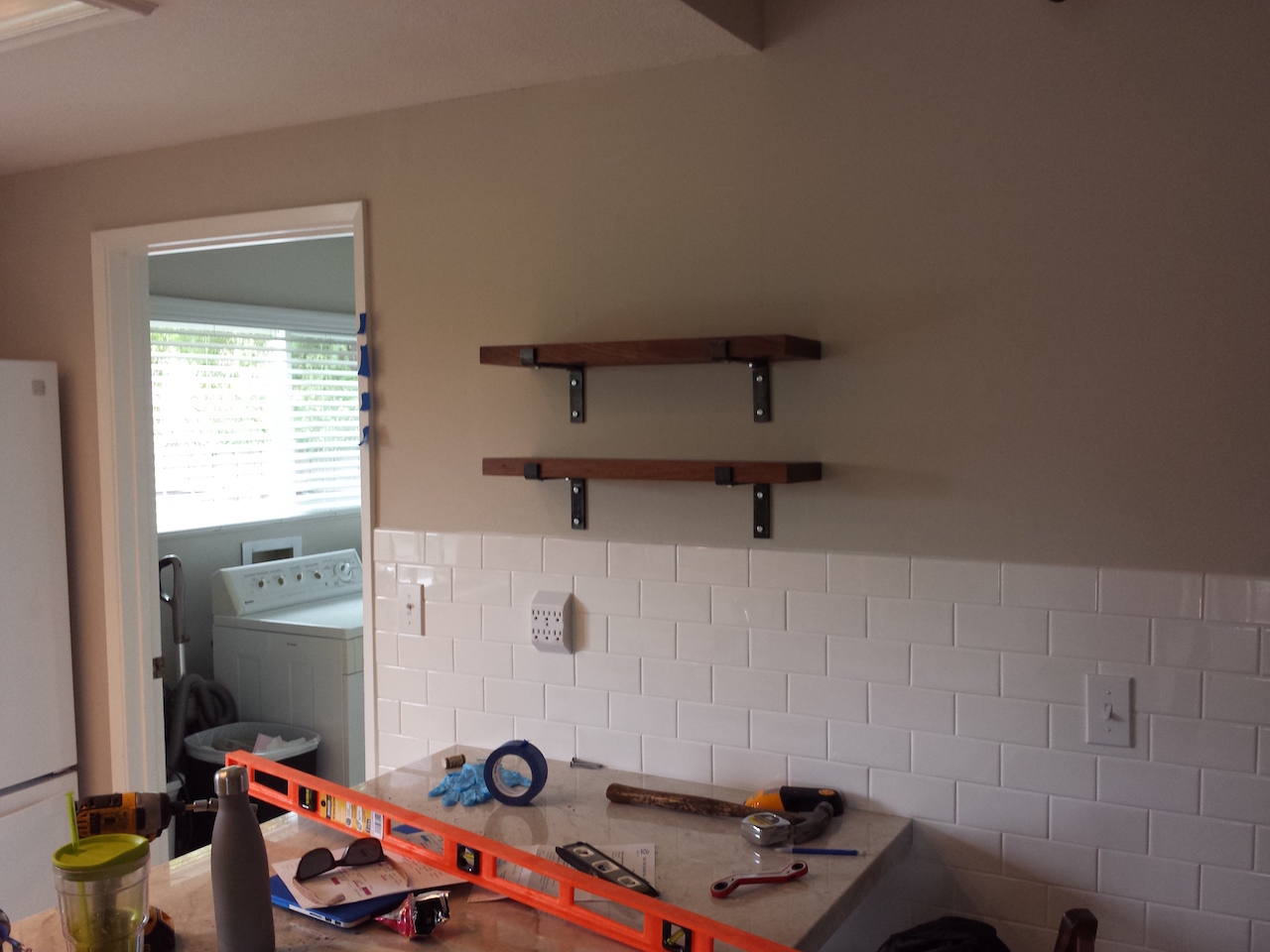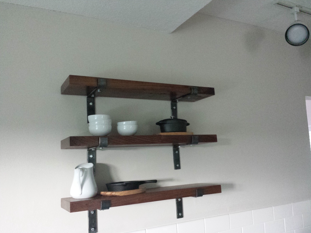 To fill in a section of wall in our kitchen, my wife found a set of brackets from a company called Cascade Iron Co. After several weeks of intermittent work, they look pretty good!